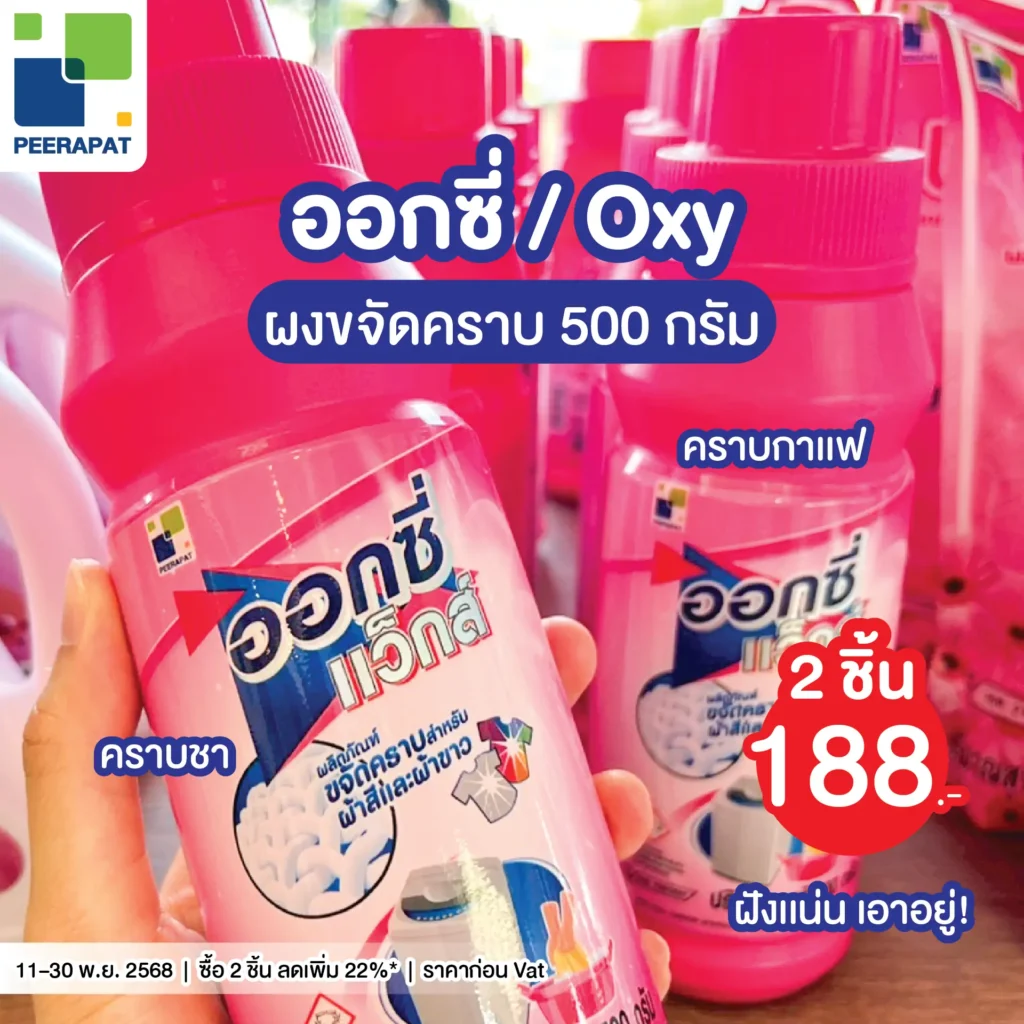 ราคาก่อน VAT: Oxy 500 g | ซื้อ 2 ชิ้น ลดเพิ่ม 22%
