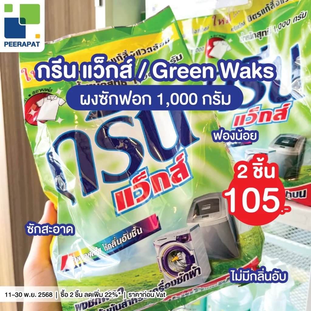 ราคาก่อน VAT: Green Waks 1 kg | ซื้อ 2 ชิ้น ลดเพิ่ม 22%