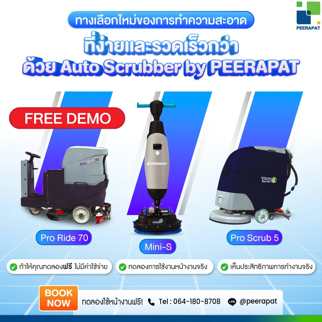 promotion ทดลองฟรี Auto Scrubber by Peerapat เครื่องขัดพื้นอัตโนมัติที่ใช้งานง่ายและรวดเร็วกว่า อุปกรณ์ทำความสะอาดร้านอาหาร ครบชุดในงบไม่ถึง 2,000 บาท โปรโมชั่น GRAND OPENING PeerapatProduct.Com ลดสูงสุด 50% ส่งฟรีทั่วไทย Load more